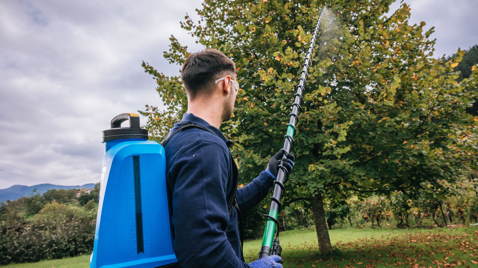 Lanza de 3,2 m de fibra de vidrio, para pulverización en altura. Adaptable a pulverizadores de presión retenida y previa presión (5 l a 20 l). No utilizar con ácidos ni disolventes agresivos.